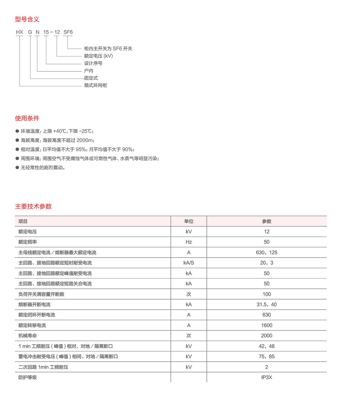HXGN15-12型單元式交流金屬封閉環(huán)網(wǎng)開關(guān)設(shè)備 (以下簡(jiǎn)稱環(huán)網(wǎng)柜) 是我們?cè)谝M(jìn)國(guó)外技術(shù)并按照國(guó)內(nèi)農(nóng)電及城網(wǎng)改造之要求而自行設(shè)計(jì)、研制成功的新一代高壓電器產(chǎn)品。各項(xiàng)技術(shù)性能指標(biāo)全I(xiàn)EC62271-200:2003和GB3906標(biāo)準(zhǔn)。